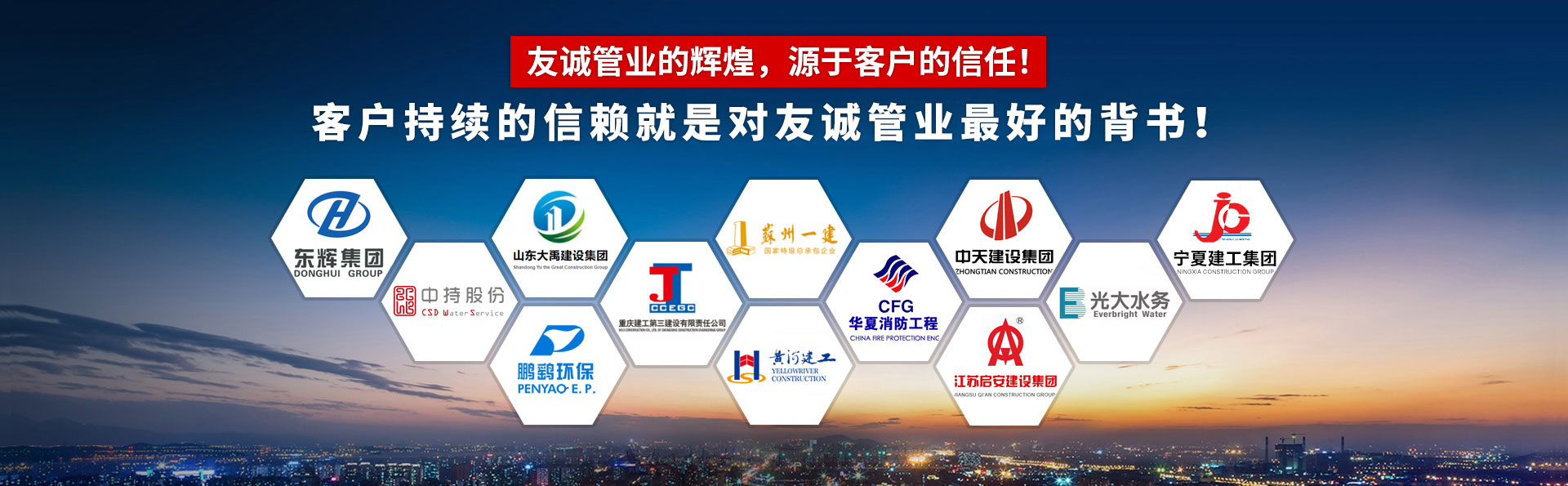 沧州友诚管业有限公司是一家专业从事生产防腐涂塑管道及管件于一体的大型企业。公司注册资金8600万元,位于中国管道生产基地—河北盐山县,近靠京沪高速、荣乌高速、黄石高速30公里,高铁沧州西站40公里,天津国际机场、济南遥墙机场150公里,为客户来访及业务发展提供了便利的交通条件。 钢管系列:螺旋钢管、无缝钢管、ERW直缝焊管、JCOE埋弧焊直缝钢管、热镀锌钢管。 涂塑系列:内外涂塑钢管、涂塑复合钢…… 了解更多